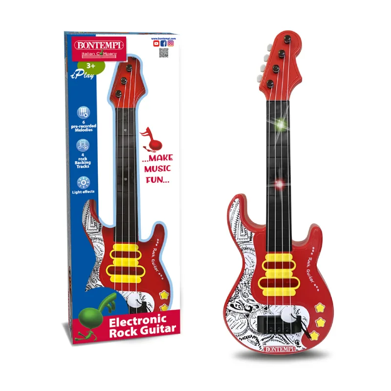 Neka vaš mališan postane prava rok zvijezda uz BONTEMPI Elektronsku Rock Gitaru! Ova fantastična gitara za igru donosi autentično iskustvo sviranja, potičući dječiju maštu, samopouzdanje i ljubav prema muzici. Savršena za djecu stariju od 3 godine.