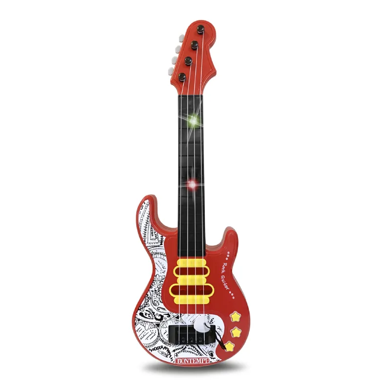 BONTEMPI Elektronska Rock Gitara je savršen instrument za male rokere (3+ godine)! Ima 6 metalnih žica, ugrađen optički senzor za aktiviranje efekata i svjetlosne efekte. Uključuje remen za nošenje i 6 demo pjesama. Potiče ritam, motoriku i samopouzdanje. Spremni za prvi solo nastup?