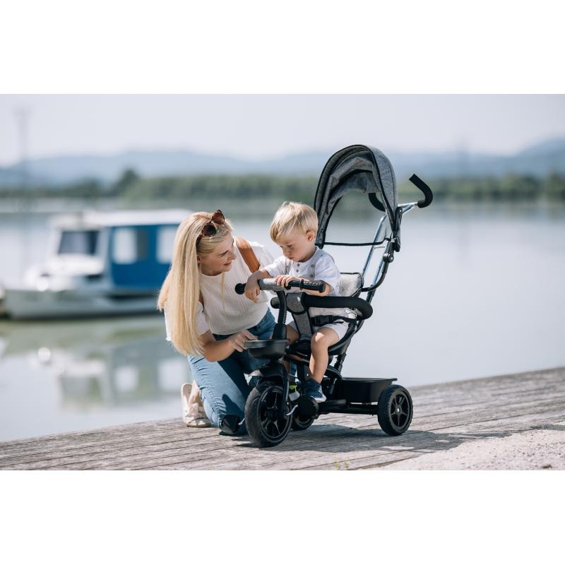 Udoban i siguran tricikl idealan je izbor za duge šetnje u prirodi. Dijete će tijekom ugodne vožnje znatiželjno promatrati okolinu. Roditelje će s druge strane oduševiti potpuni nadzor nad vožnjom i lakoća upravljanja.