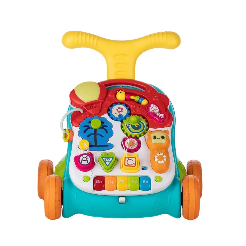 Hodalica je neizostavno pomagalo za kretanje koje djetetu osim oslonca pruža i zabavu. Na prednjem dijelu hodalice nalazi se prostor za igru s brojnim elementima, igračkama i gumbima koji odvlače pažnju i animiraju mališana. Atraktivne boje privući će djetetovu pozornost, a posebno će biti zanimljiv mobilni telefon sa zvučnim efektima. Walk&Play 2-u-1 interaktivna dječja hodalica za svako malo dijete Walk&Play 2-u-1 interaktivna hodalica za bebe moderna je hodalica dizajnirana za djecu i roditelje. Djeca se razvijaju različitom brzinom – neka brže, druga sporije, neka ranije prohodaju, druga kasnije. Ono što ih razlikuje od ostalih kolica na tržištu je mogućnost podešavanja ručke na dvije različite visine. Na taj način možete optimalno prilagoditi visinu svom djetetu u različitim godinama.