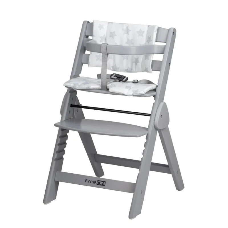 FREEON Hranilica Finny Fold je drvena, sklopiva hranilica sive boje. Raste s djetetom (od 6 mj. do 15 kg) zahvaljujući podesivom sjedištu i osloncu za noge. Ima sigurnosni pojas u 3 tačke i uklonjivu zaštitnu prečku. Idealna je za manje prostore zbog mogućnosti kompaktnog sklapanja.