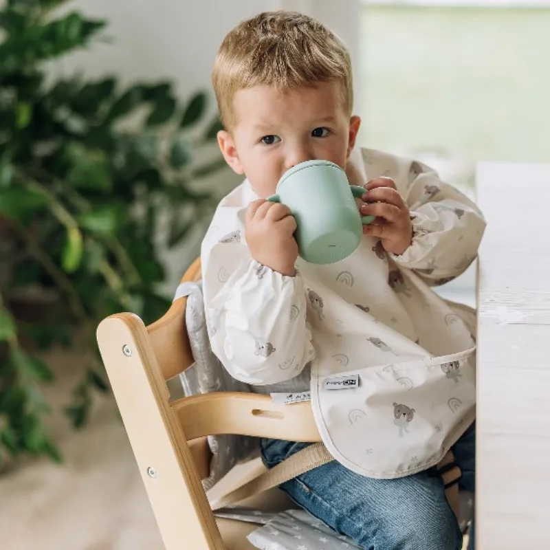 Lagana, izdržljiva i praktična – ovaj siperak pruža odličnu zaštitu od fleka i održava ramena i rukave čistim. Ima praktično kopčanje dugmadima i poseban prednji džep koji hvata prosutu hranu i tekućine, pomažući da odjeća ostane čista.