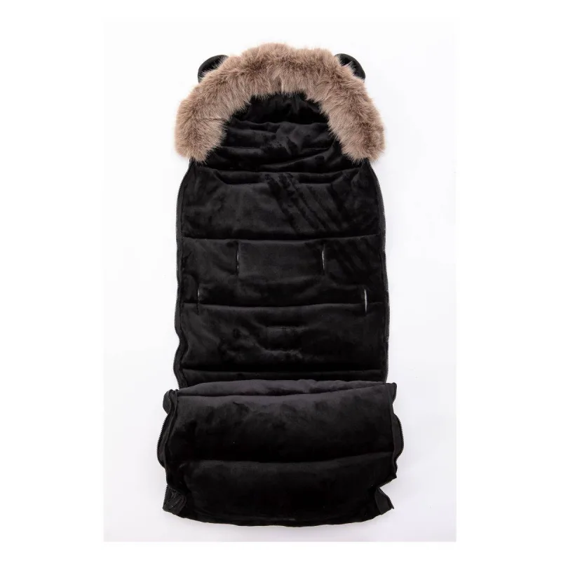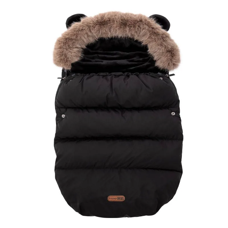 Vanjski dio zimske vreće je vodootporan i otporan na vjetar. Štiti dijete od kiše i snijega. Zimska vreća ima i otvore za 5-točkovni sigurnosni pojas; za lakše pričvršćivanje djeteta. Zatvarač sa svih strana omogućuje brzo i jednostavno stavljanje bebe u ili iz zimske vreće. Elastični gornji dio koji se može sklopiti i može se koristiti kao kapuljača u vjetrovitim i hladnim uvjetima. Odvojivi gornji dio s patentnim zatvaračem koji se otvara s obje strane izvrstan je za korištenje pri prijelazu iz vanjskog u zatvoreni prostor. Vodootporna površina otporna na vjetar zadržava kišu i snijeg izvana. Nabori na donjem dijelu omogućuju kretanje.