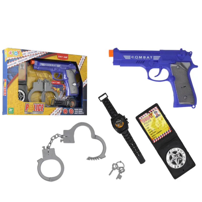 • Sadržaj: Igračka pištolj sa zvukom i svjetlom, lisice s ključevima, sat i policijska značka.
