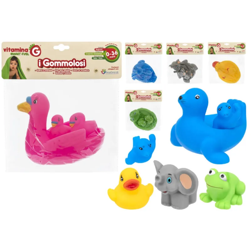 Ovaj set gumenih igračaka za kupanje savršen je za djecu od rođenja do 36 mjeseci. Simpatične životinjice, poput patkice, slona, foke i žabe, učinit će kupanje zabavnijim i potaknuti maštu. Set je dostupan u raznim kombinacijama, što ga čini idealnim poklonom.