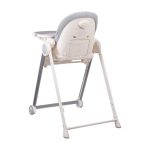 Minimalistička, moderna i funkcionalna hranilica sa podesivim naslonom, sigurnosnim pojasom i poslužavnikom kojeg je moguće skinuti, osigurava sigurno i ugodno hranjenje.