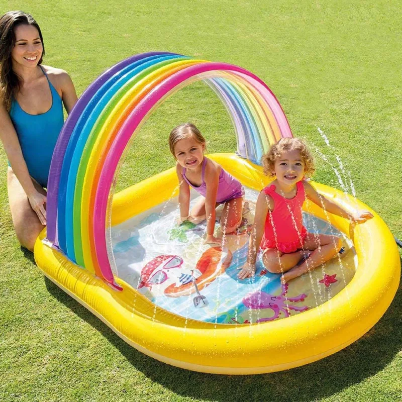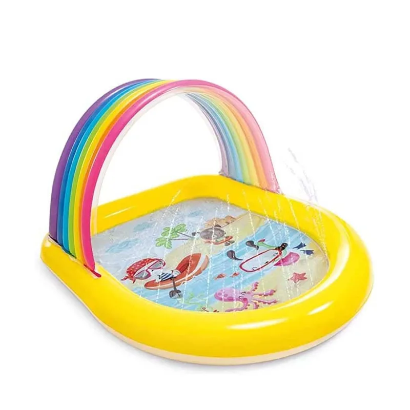 Ovaj predivni dječiji bazen marke Intex učiniće da se mališani osjećaju kao da su u čarobnom svijetu! Prskalice u obliku duge aktiviraju se jednostavnim priključivanjem baštenskog crijeva – dovoljno je da ga spojite s bazenom i zabava može početi!
