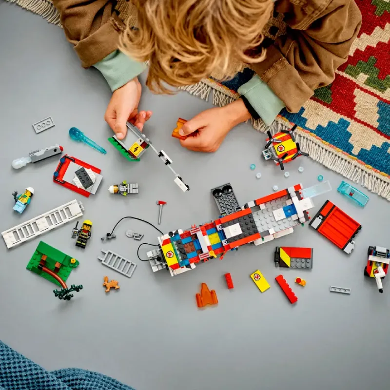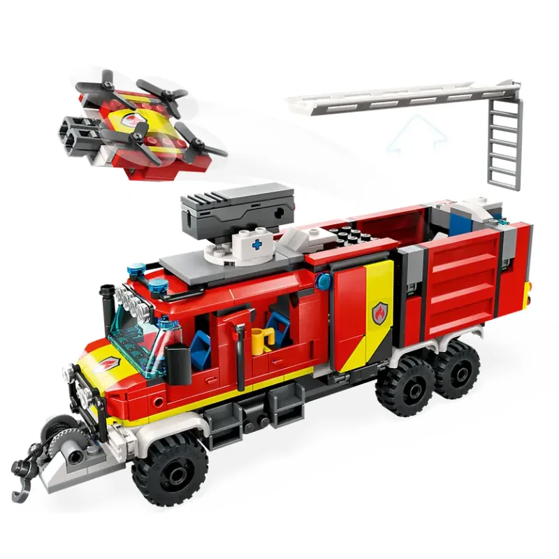 Unesite vatrenu akciju u dječiju igru uz LEGO City Fire Command Truck (komplet br. 60374) – uzbudljiva vatrogasna misija za djecu uzrasta od 7 godina i više. Ovaj set je prepun inovativnih funkcija, uključujući odvojivi komandni centar, vatrogasni dron i terenski dron, što dodatno podiže nivo kreativne zabave.